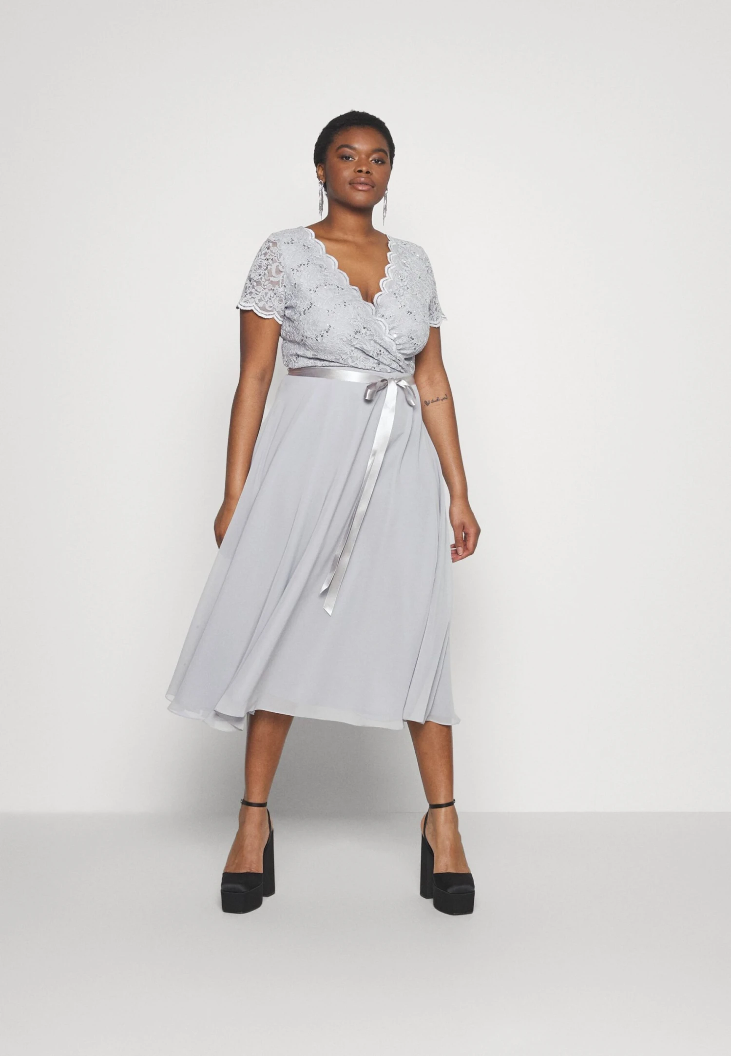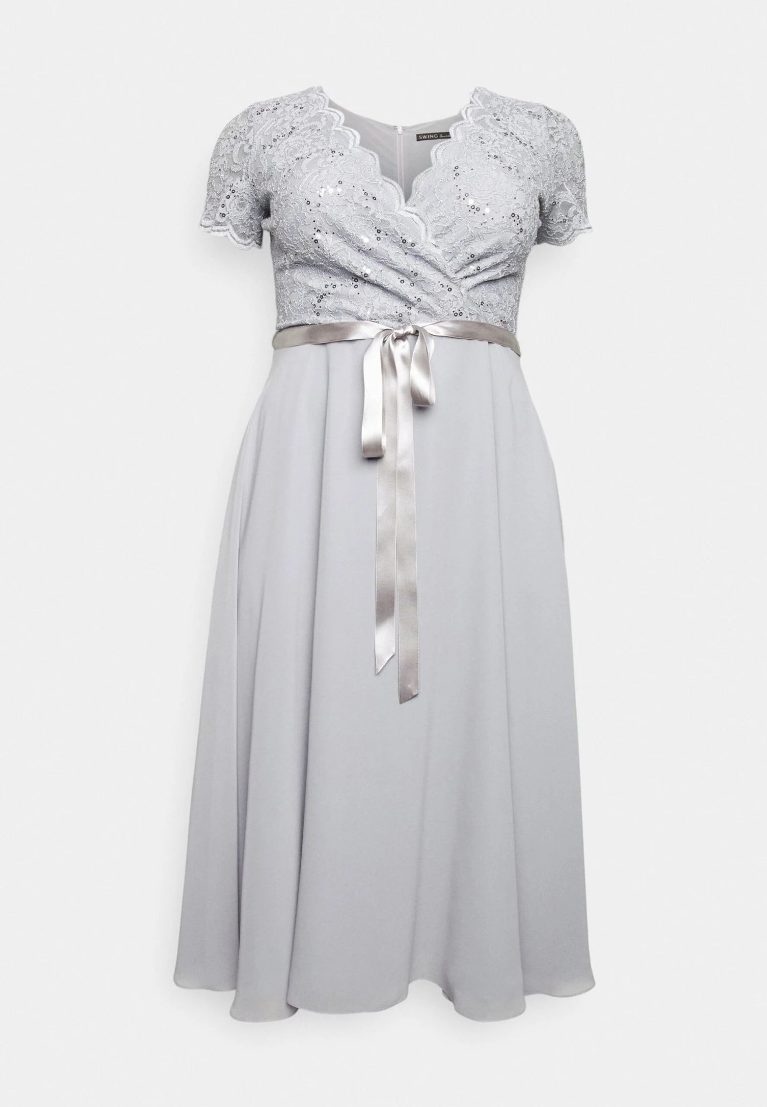 Dress Made Of Material Mix – Cocktailjurk – Silver-Coloured