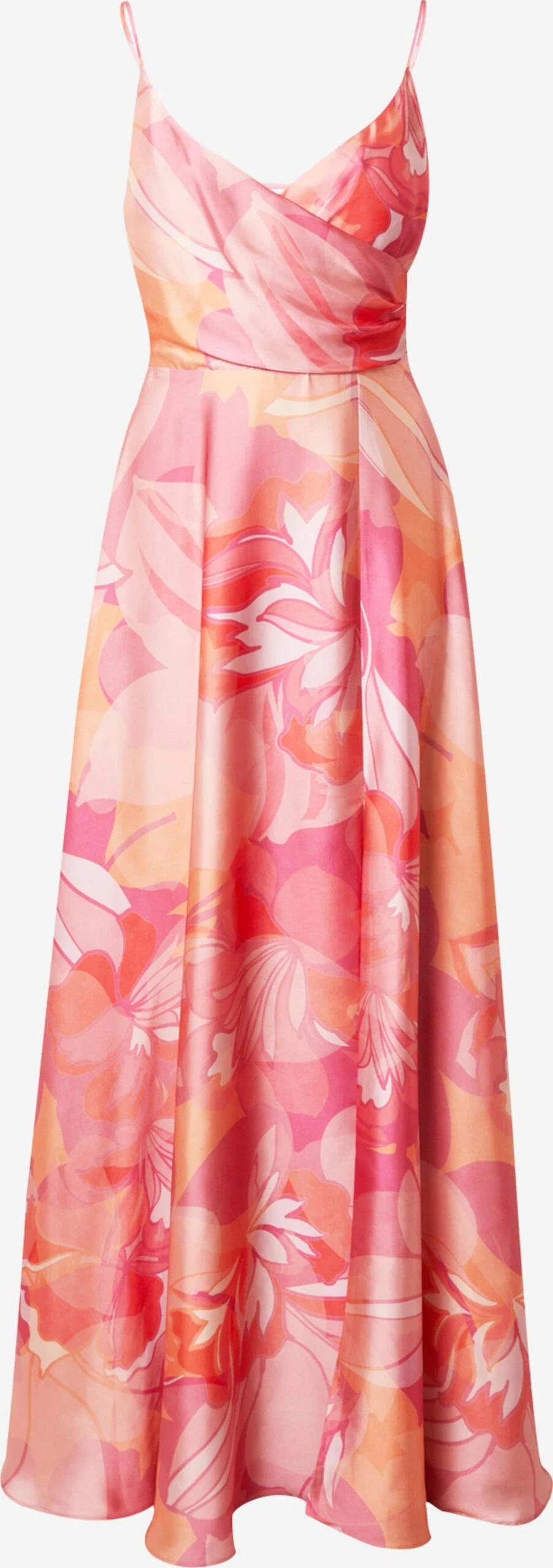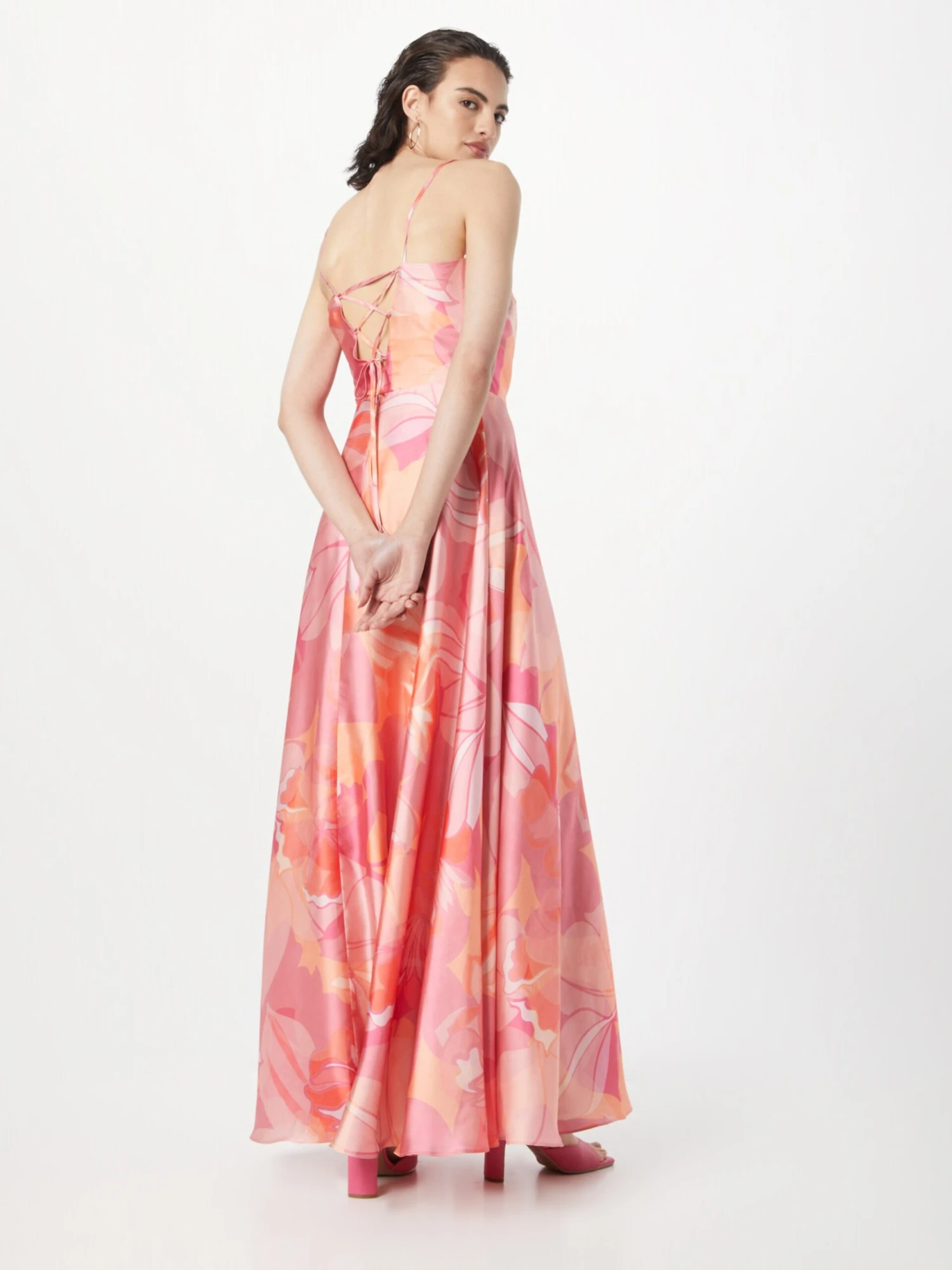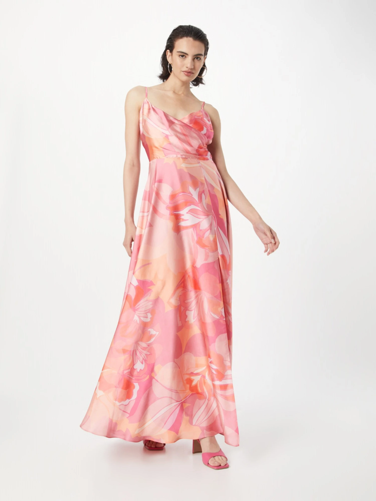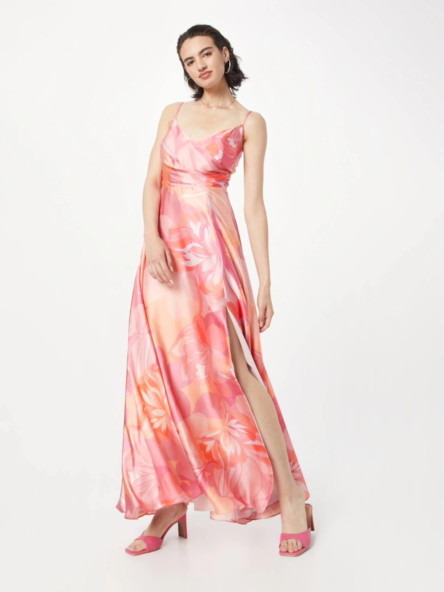 BloemenprintSatijnSpaghettibandjesV-halsGedrapeerdWikkel designGevoerde zoom/randFlareBeenopeningMet band/snoerRug ritsAll-over patroonLichte stofRitssluiting