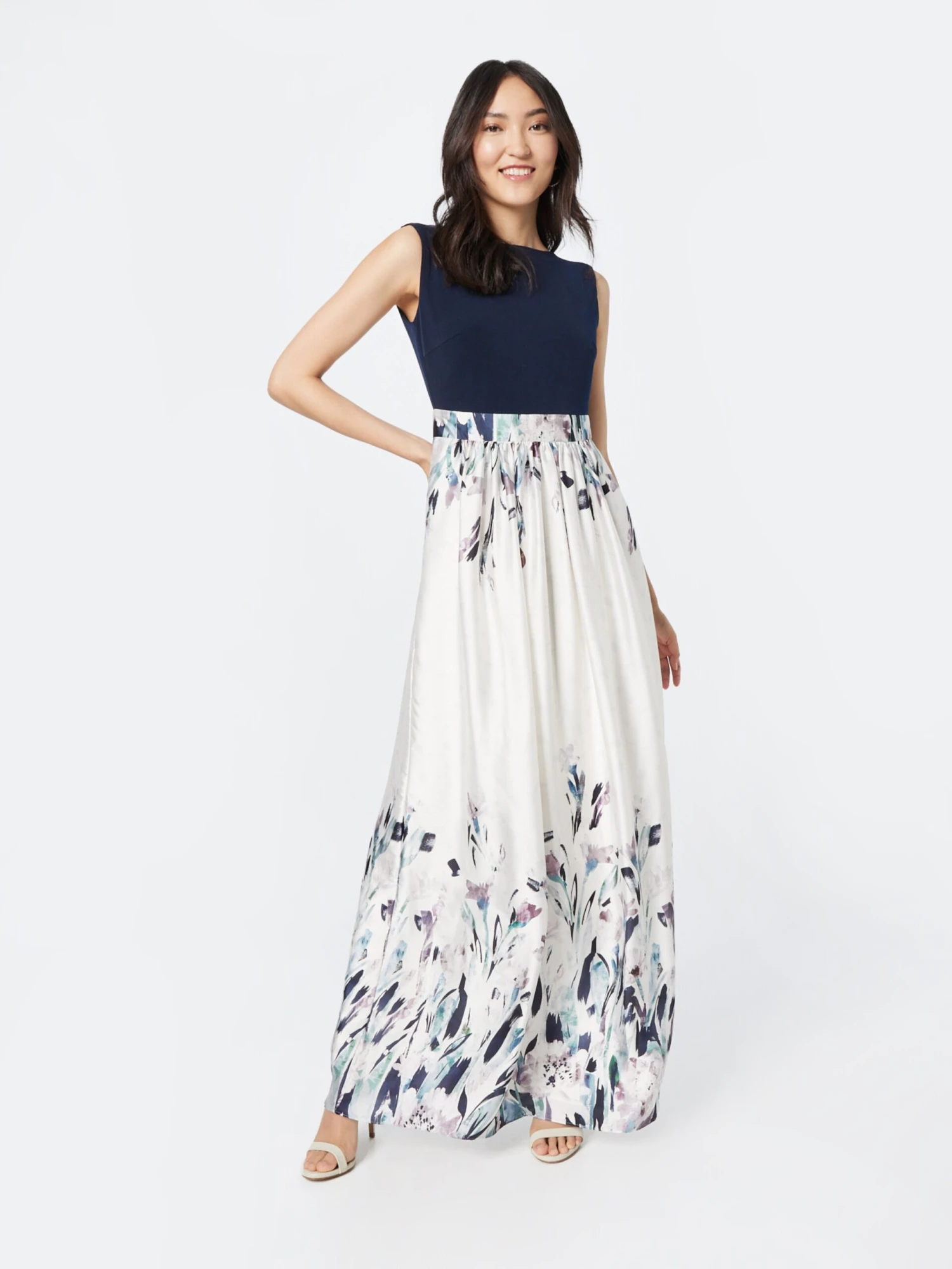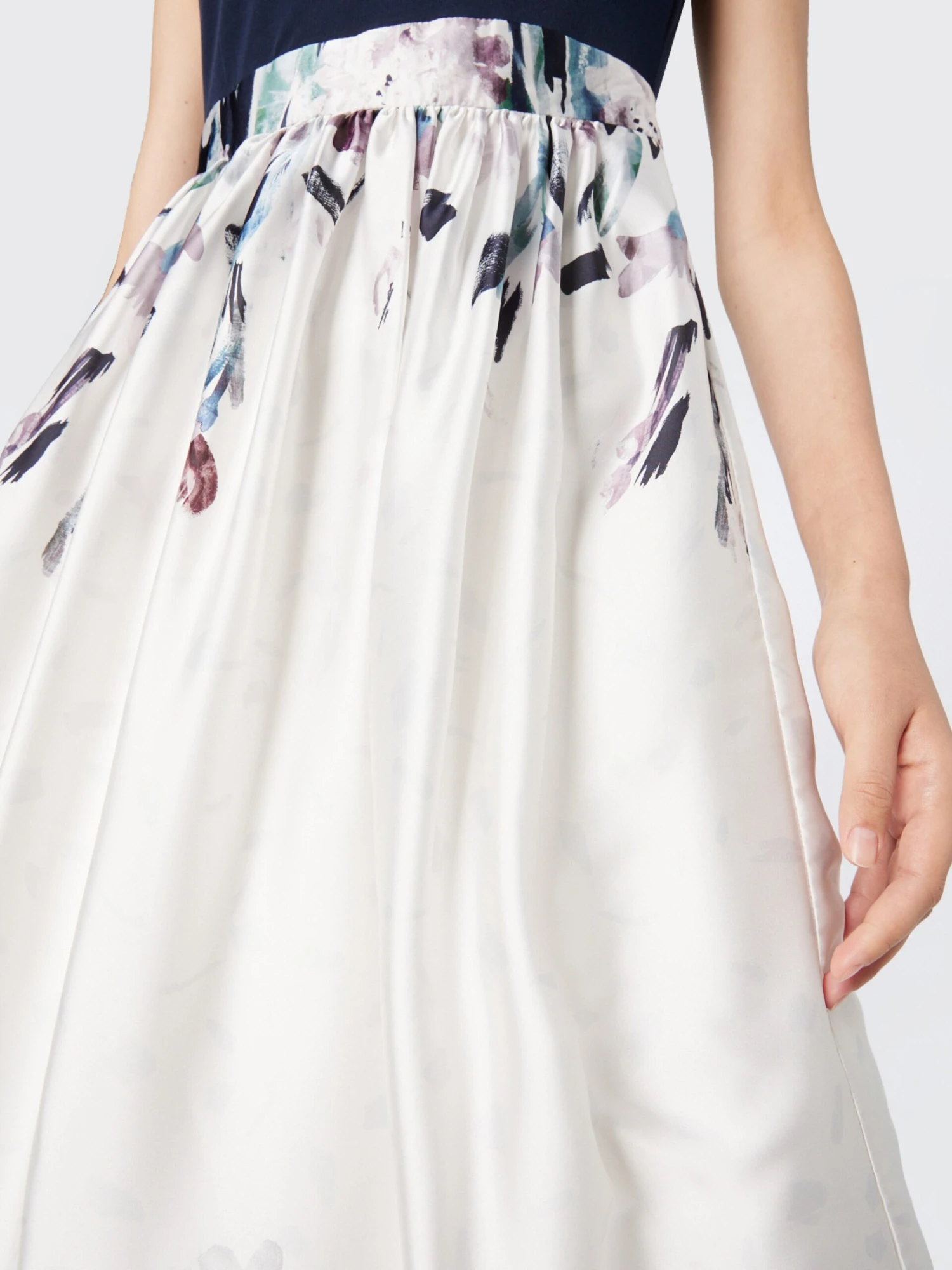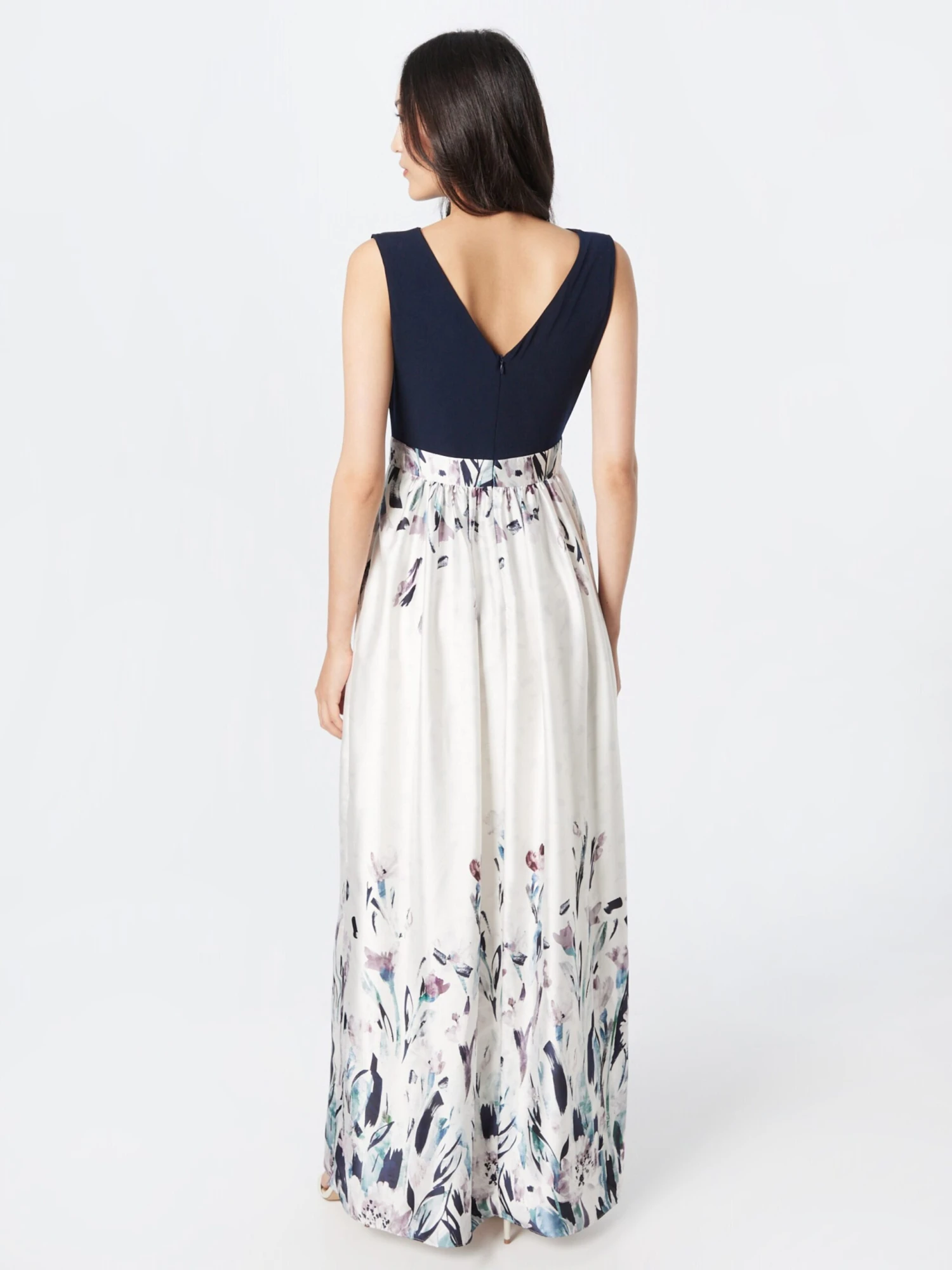 BloemenprintBrede bandjesRonde halsGedrapeerdRug ritsUitgesneden rugGladde stofVoelt zacht aanRitssluiting