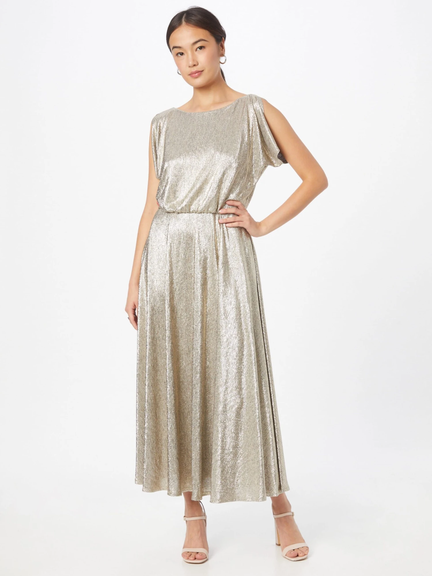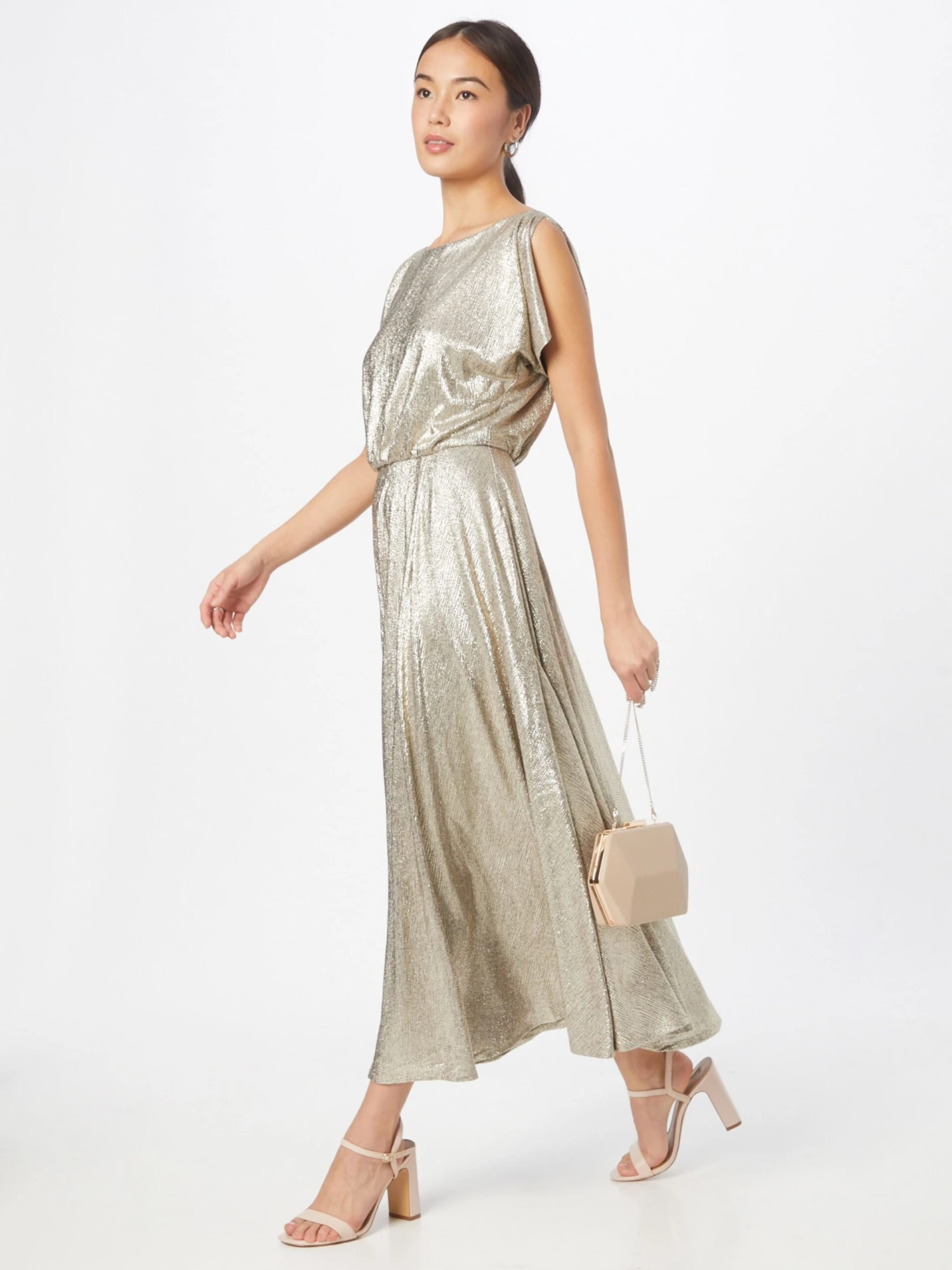 EffenJerseyRonde halsPlooienGevoerde zoom/randRechte zoomKeyholesluitingRug ritsGlinsterendMetallic look