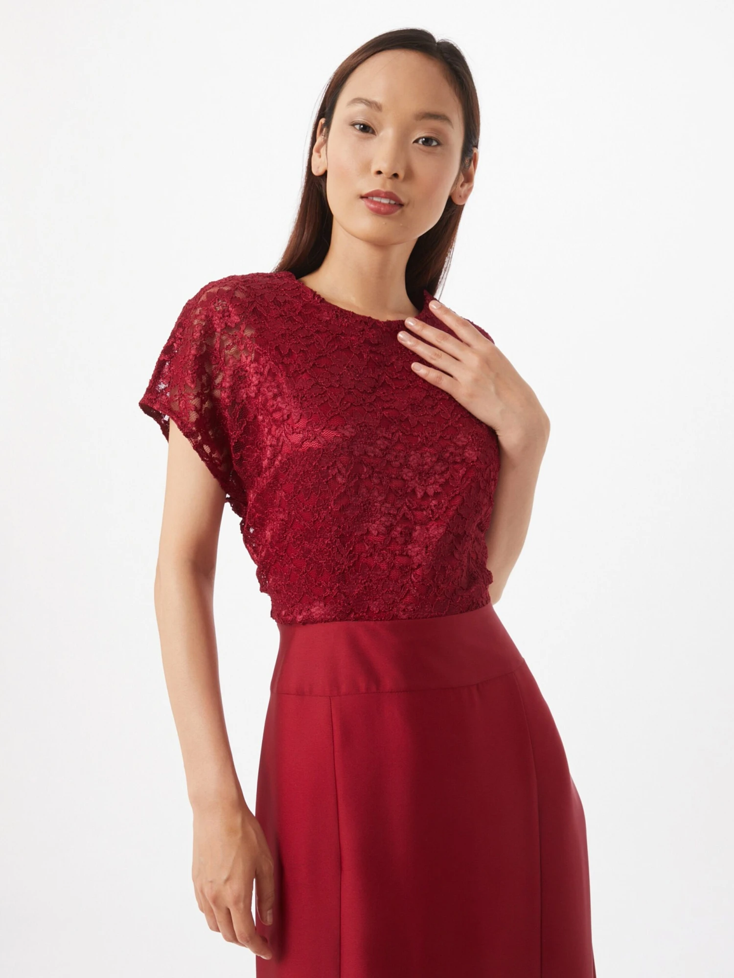 EffenChiffonRonde halsKantPlooienGevoerde zoom/randRug ritsTaillebandGladde stofRitssluiting
