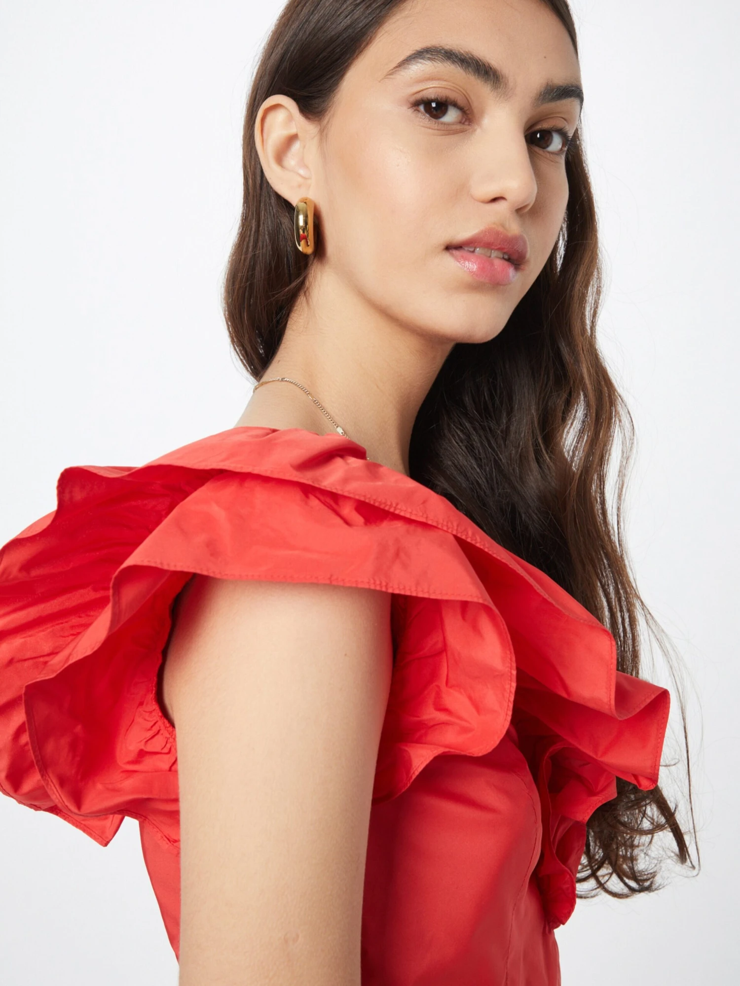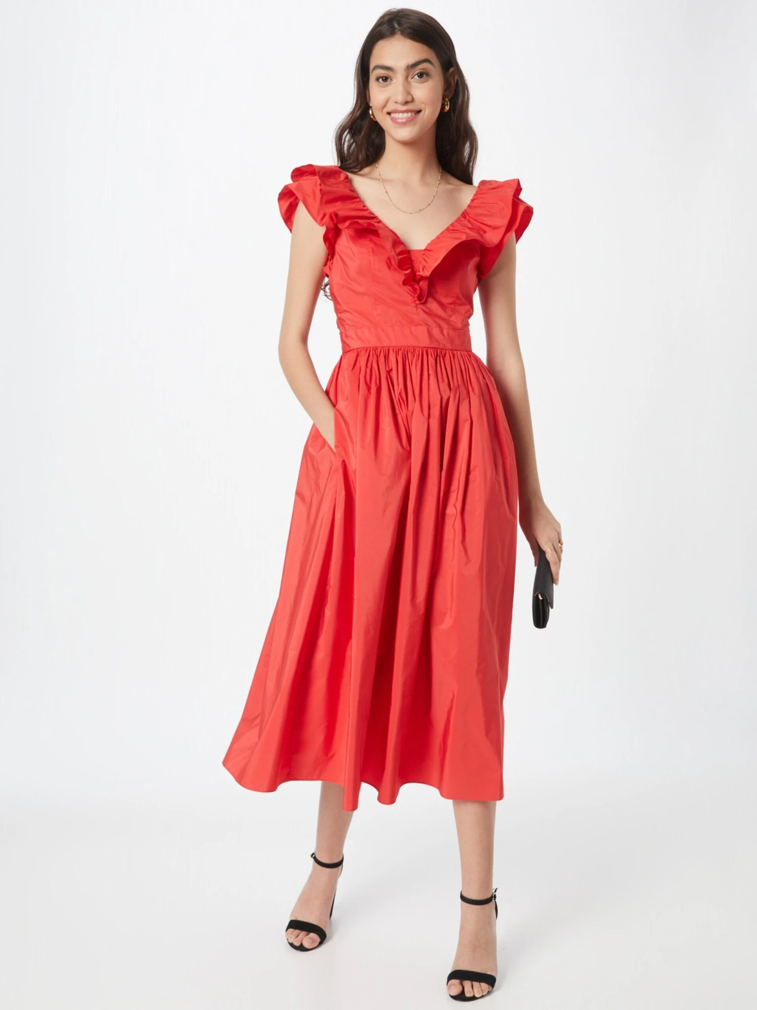 EffenV-halsVolantGedrapeerdFlareRug ritsDiepe snit/decolletéOp staal nadenGladde stofRitssluiting