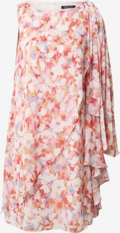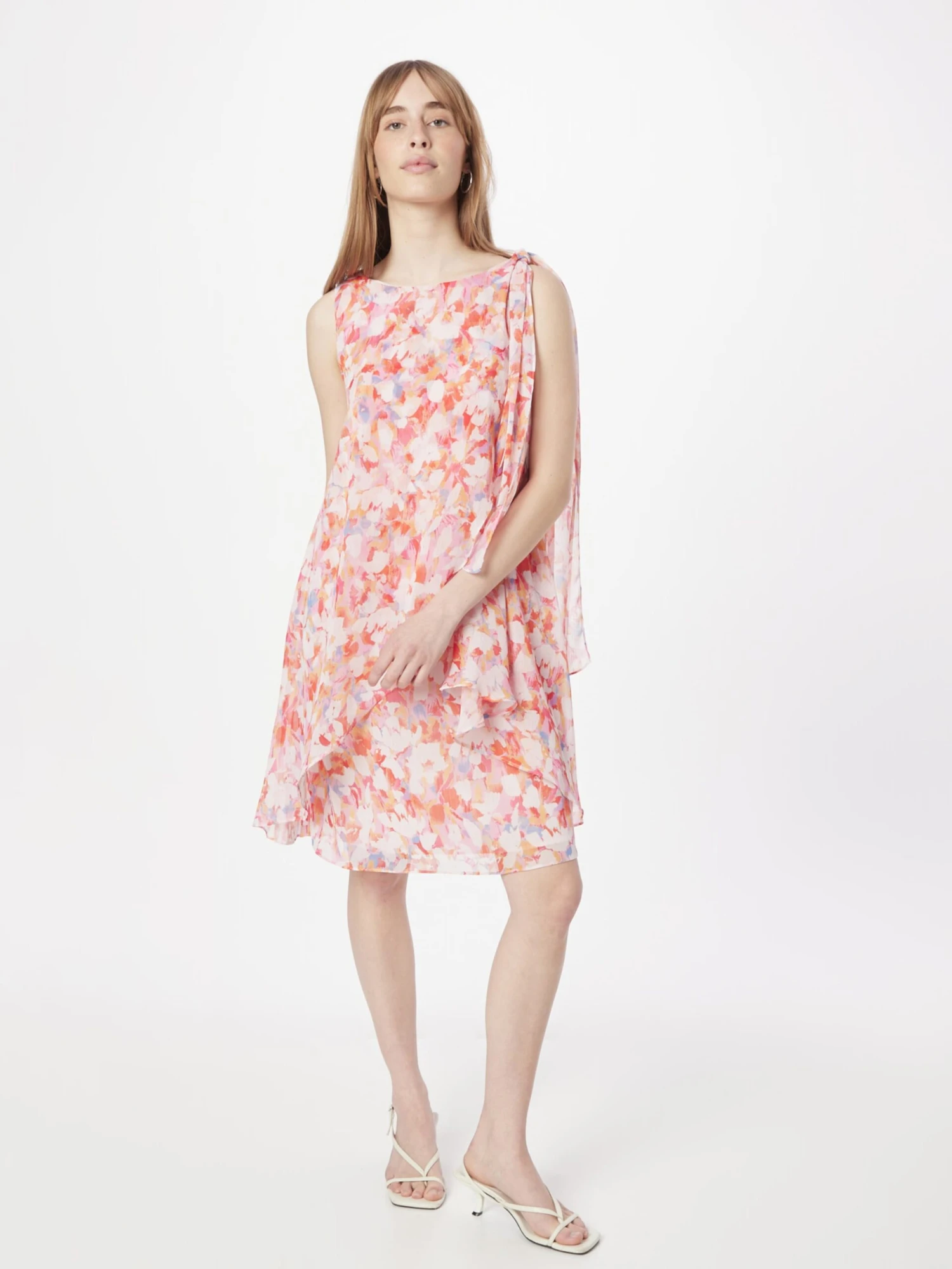 BloemenprintChiffonBrede bandjesBoothalsVolantGevoerde zoom/randRechte zoomMet onderjurkRug ritsAll-over patroonGladde stofRitssluiting