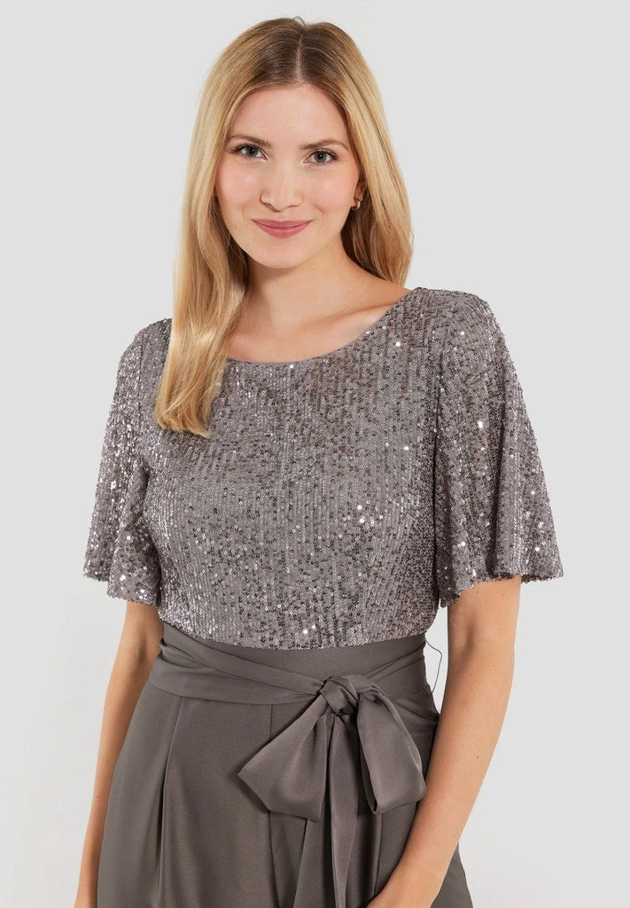 Een jumpsuit met prachtige pailletten aan de top en satijnen broekspijpen. Elegant en vrouwelijk. De jumpsuit sluit mooi aan in je taille en door de pailletten zul je zeker shinen!