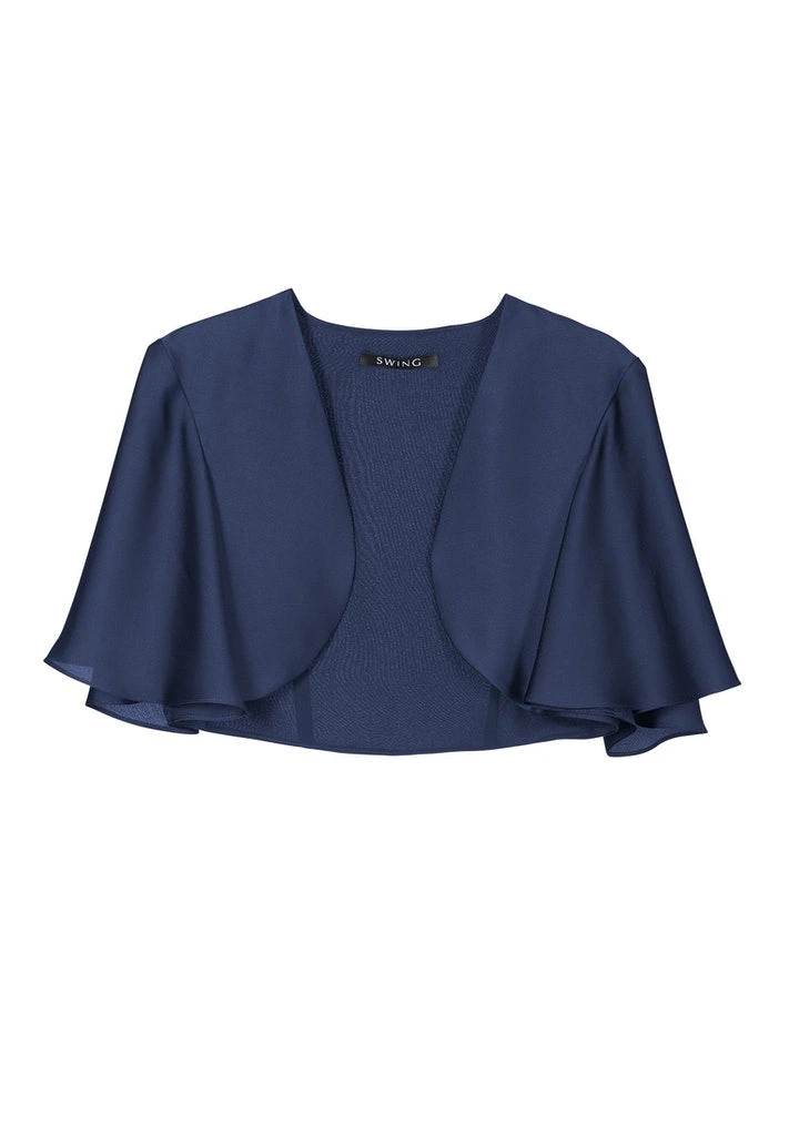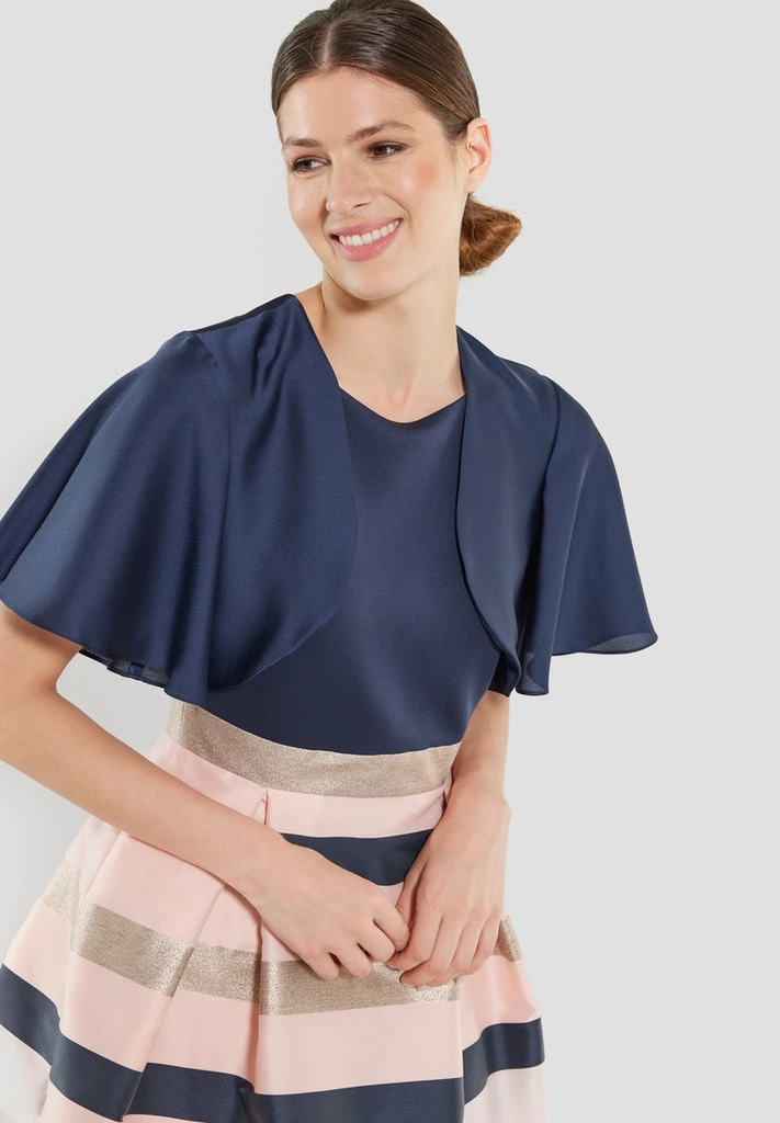 Kort satijnen bolero jasje dat niet gevoerd is. Goed voor de perioden waarin je toch je schouders en bovenarmen wat bedekt wilt hebben.