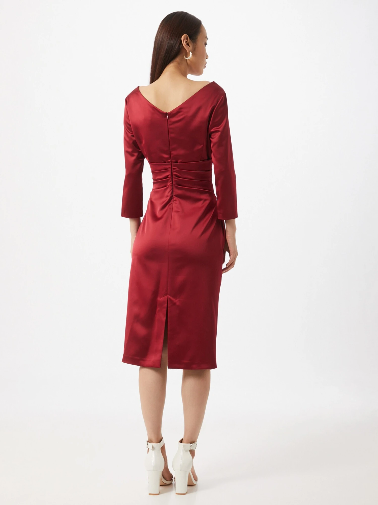 EffenSatijnBoothalsPlooienFiguurnadenRug ritsGetailleerd modelOp staal nadenGladde stofRitssluiting