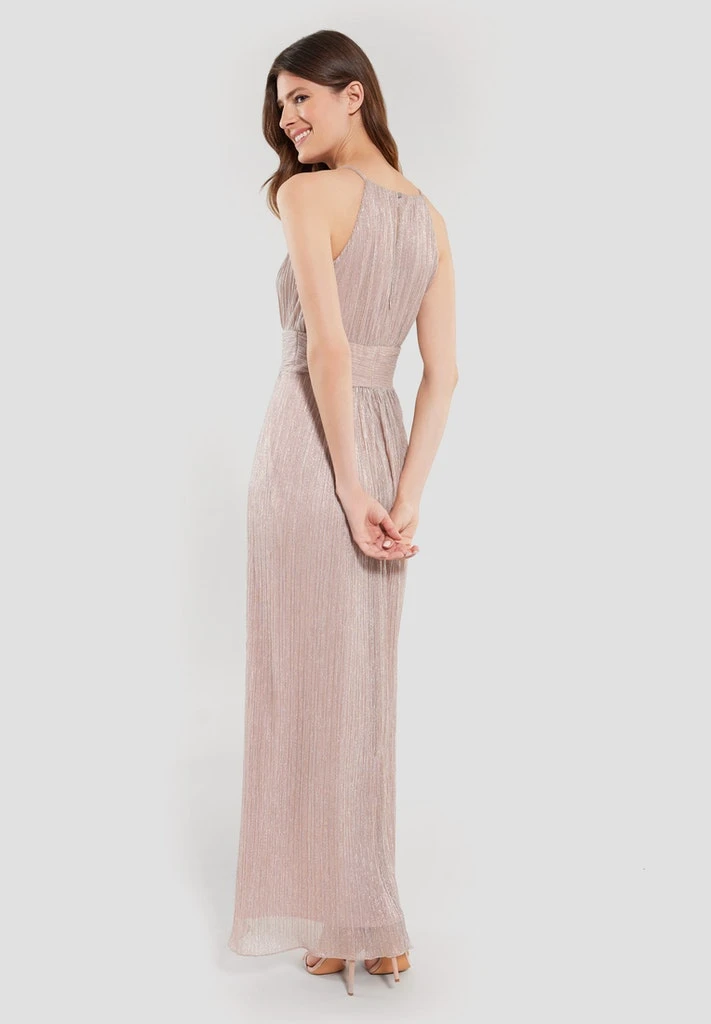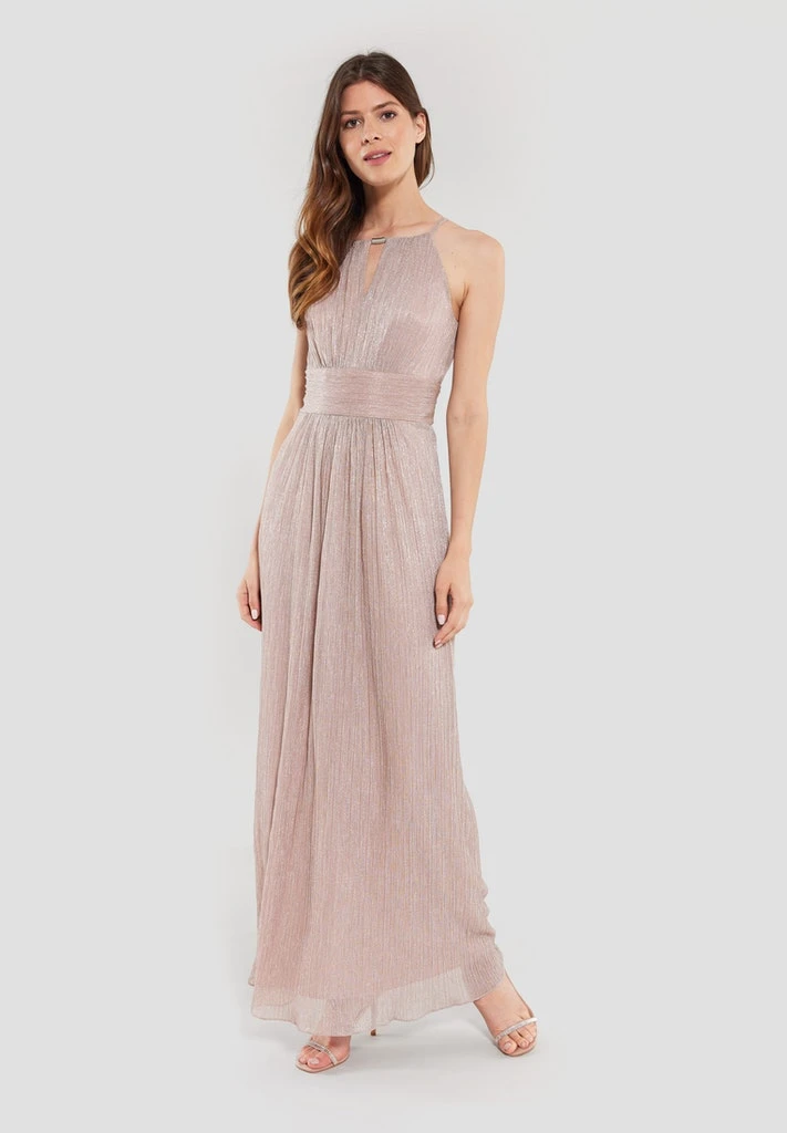 Elegante maxi jurk met glitter welke perfect is voor een bruiloft of feestje. De jurk heeft een amerikaanse halslijn en een mooie tailleband die je taille goed benadrukt. De jurk rekt mee en zit comfortabel.