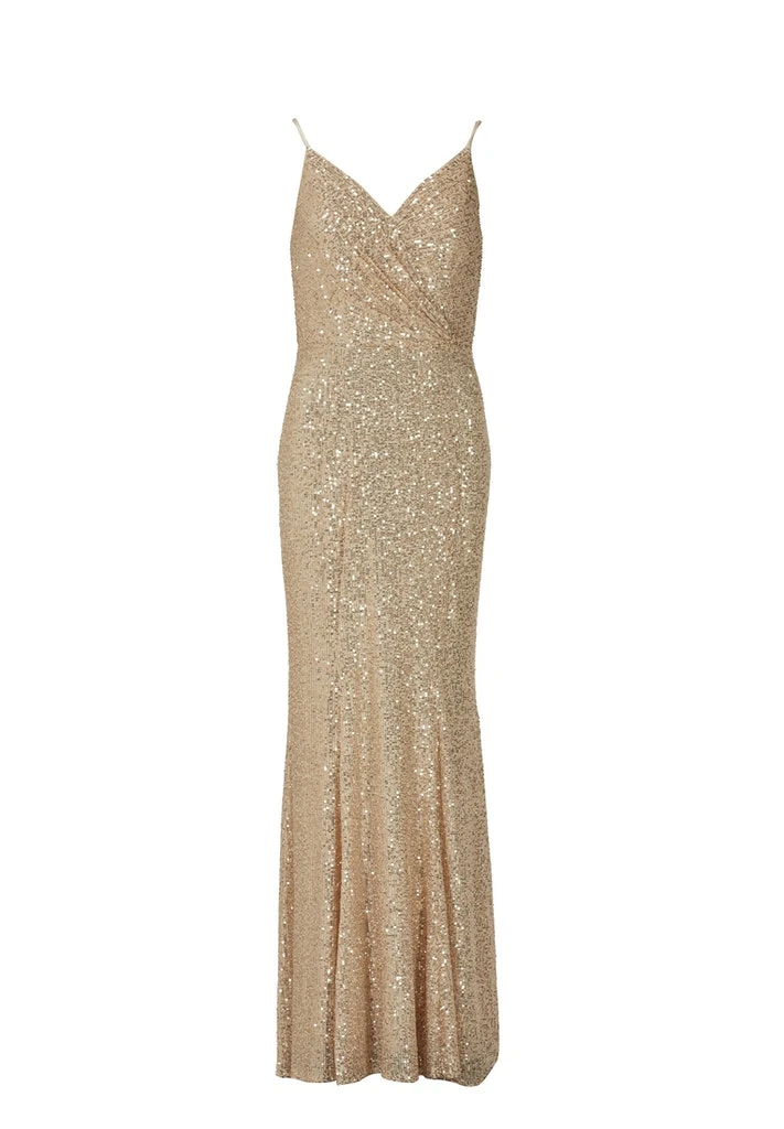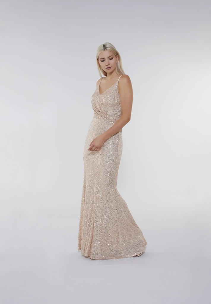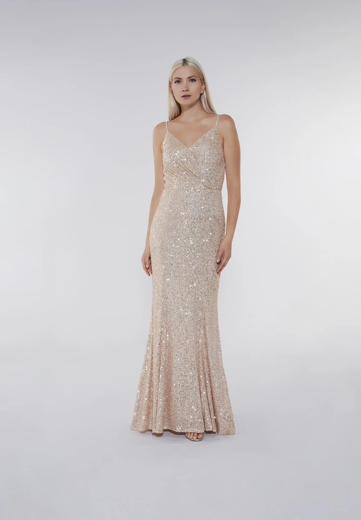 Prachtige mouwloze paillettenjurk in zeemeermin model. De jurk heeft spaghettibandjes en een ritssluiting aan de achterzijde.