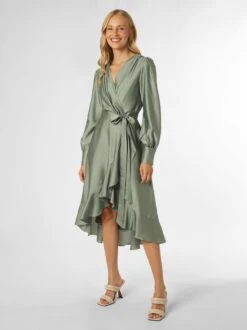 EffenSatijnV-halsVolantGedrapeerdWikkel designRitssluiting