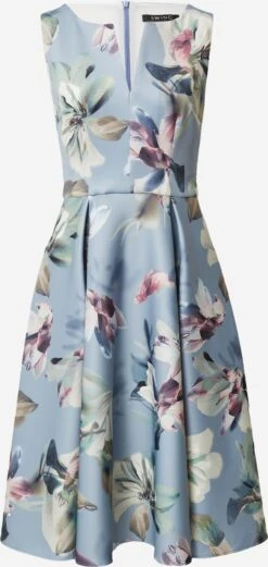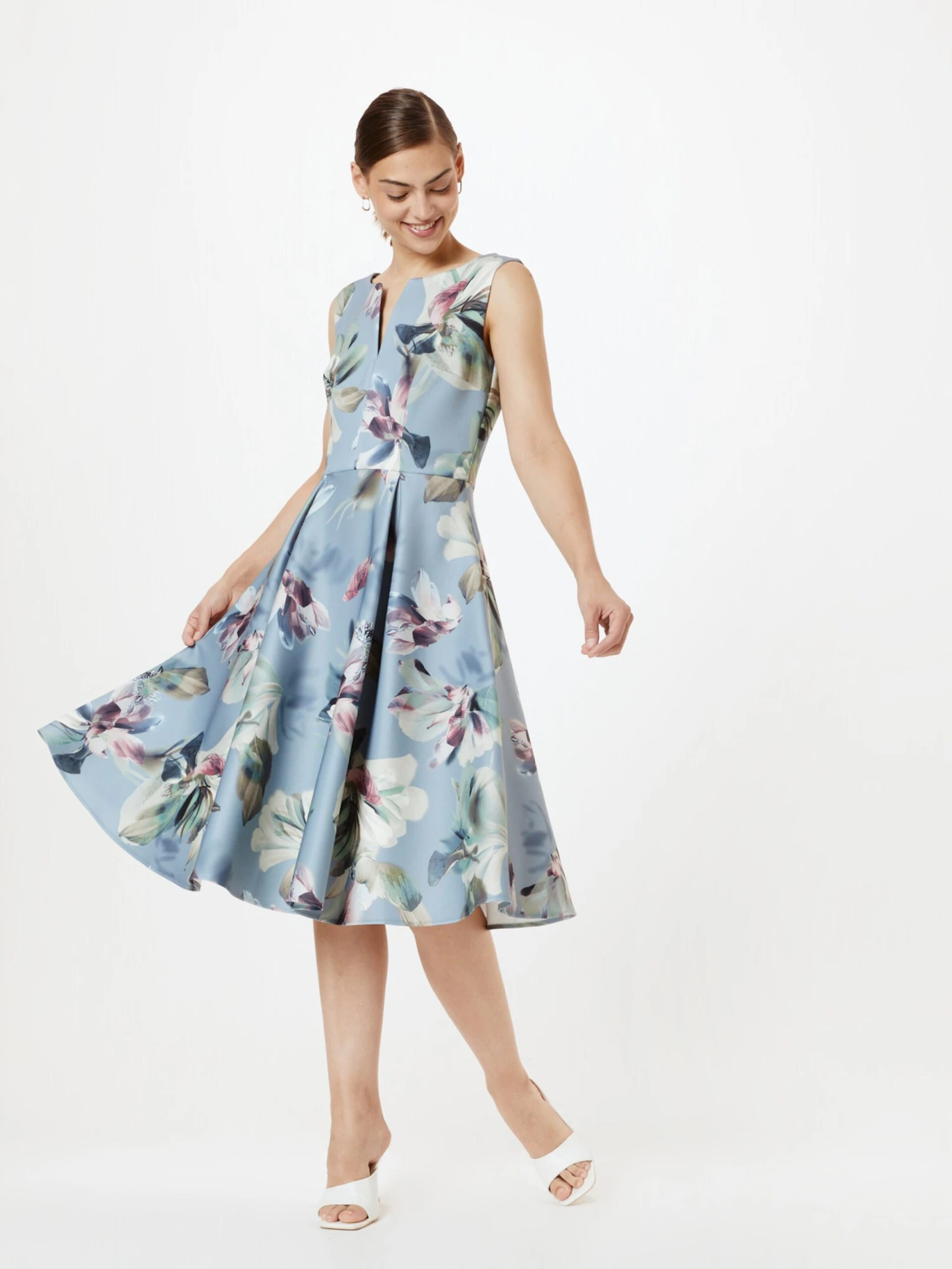 BloemenprintBrede bandjesV-halsPlooienA-lijnRug ritsAll-over patroonVoelt zacht aanRitssluiting
