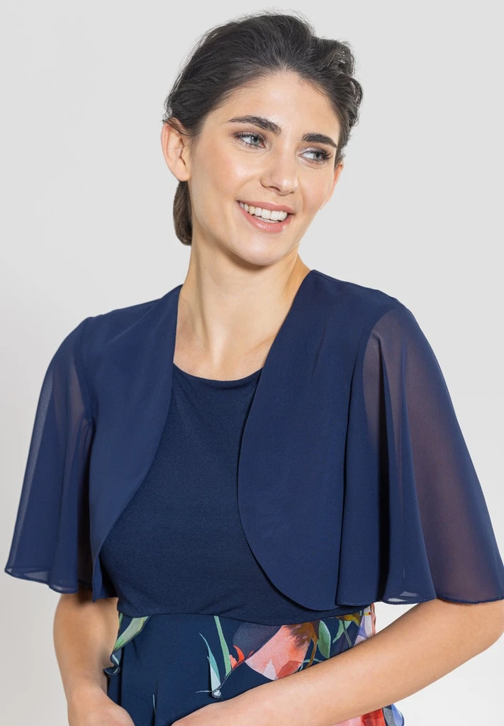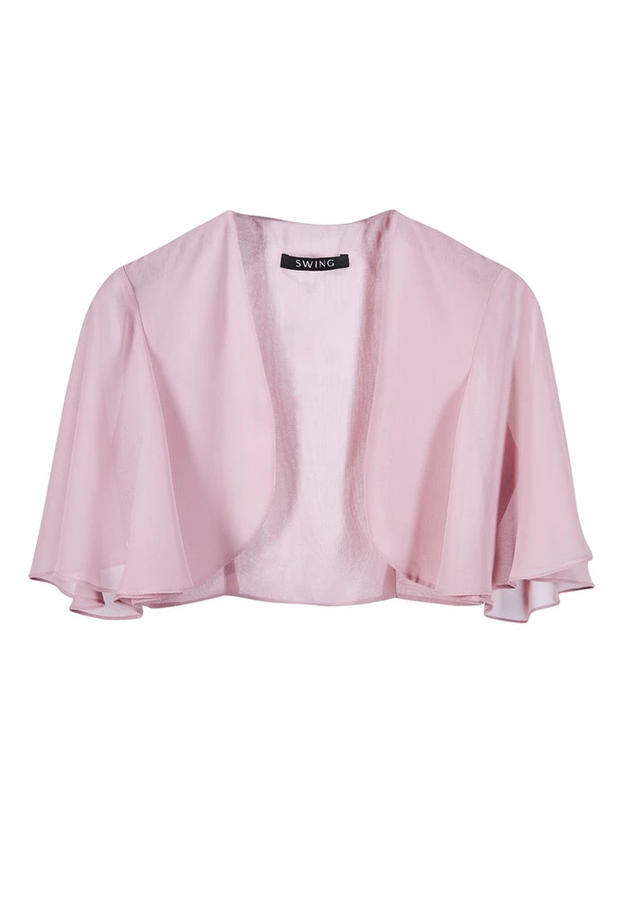 Zomerse bolero met korte mouw waarmee je je schouders en bovenarmen mee kunt bedekken. De bolero valt open en geeft net die extra finishing touch.