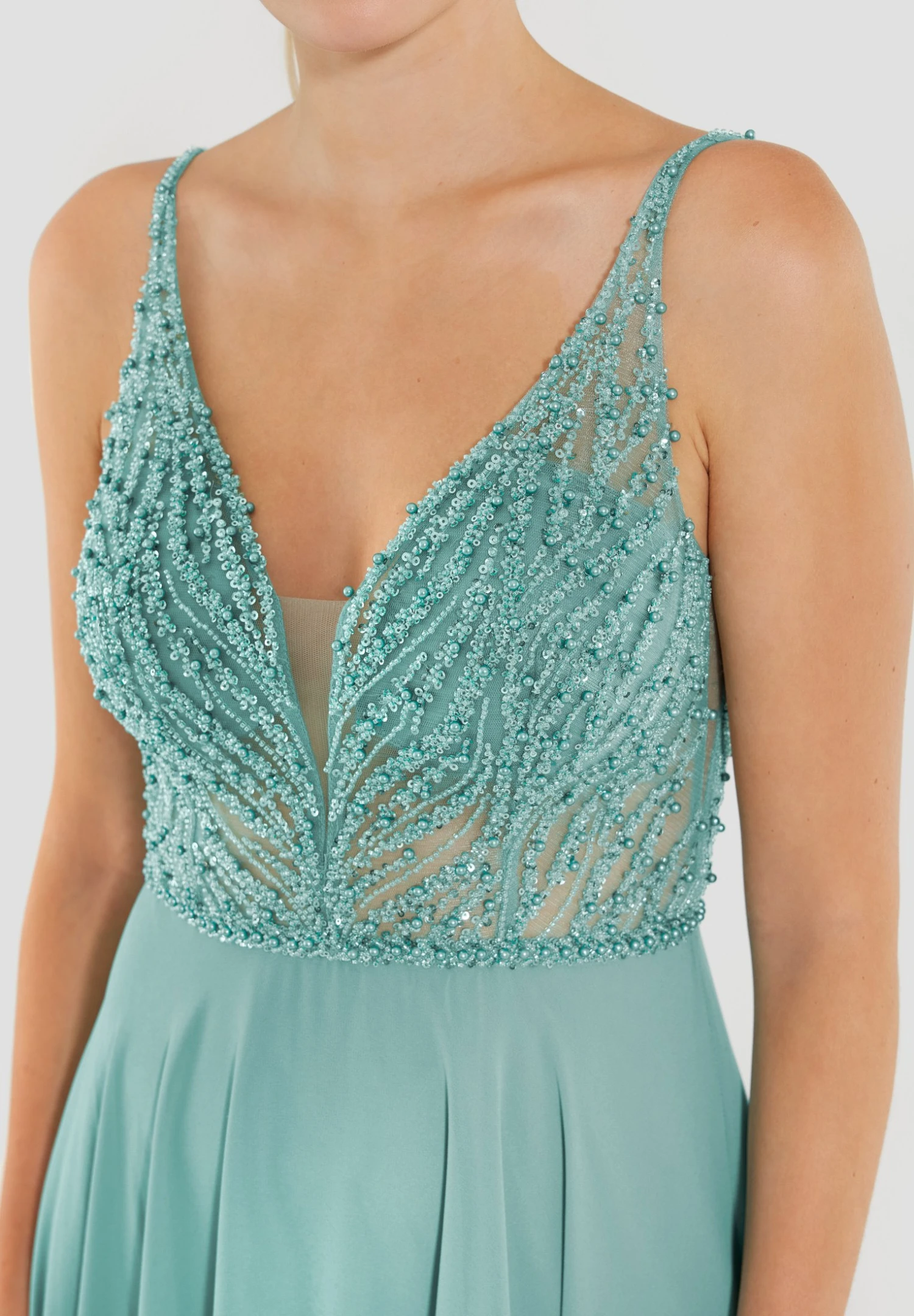 | Details | Voorgevormde cups, onderjurk, pailletten, siersteentjes |