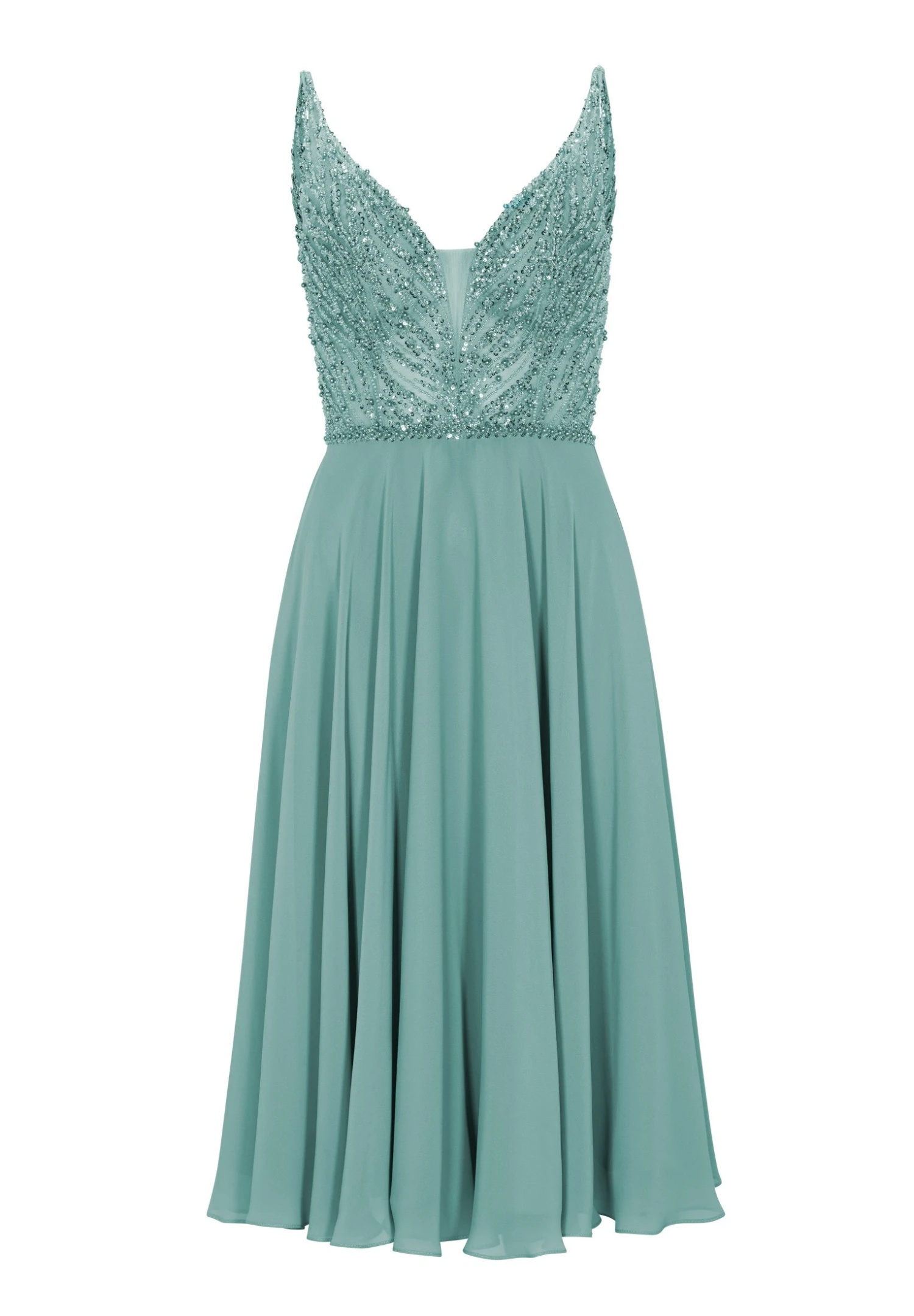 SWING Perlenbesticktes Midi Mit Cups – Cocktailjurk – Turqouise Blue